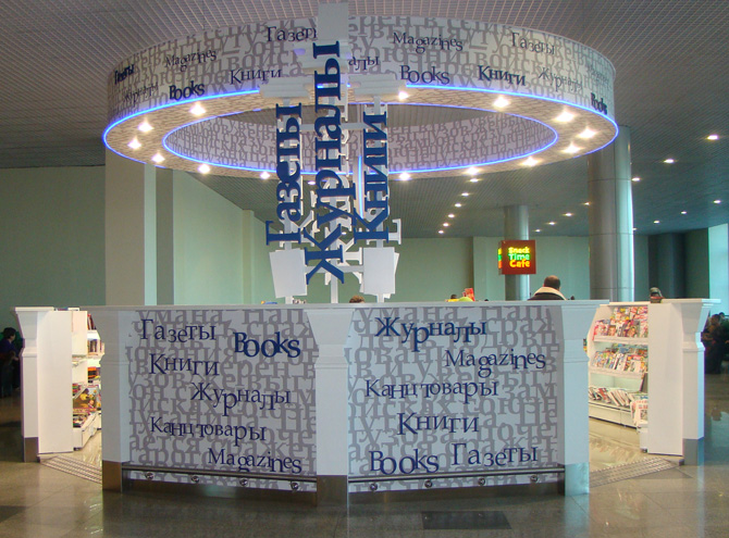 Магазин "Спринт", остров Декабрь 2012 года, Аэропорт Домодедово Оформление магазина "СПРИНТ" для ЗАО "Сейлс". Особенности проекта: При реализации были учтены все ключевые факторы (в т.ч. фирменный стиль, антивандальные материалы, специально изготовленное торговое оборудование), позволяющие создать комфортную обстановку для посетителей и персонала торговой точки на территории аэропорта. Сложность реализации проекта заключалась в необходимости оформления сопроводительной документации (инженерного проекта, сертификатов и паспортов качества), а также сложными условиями для монтажа, который производился на ограниченной площади и исключительно в ночное время. Время на производство: 28 дней на проектирование, согласование, производство и монтаж. Команда: дизайнеры, инженеры, конструкторы, 2 менеджера-координатора, сотрудники производства — 5 человек